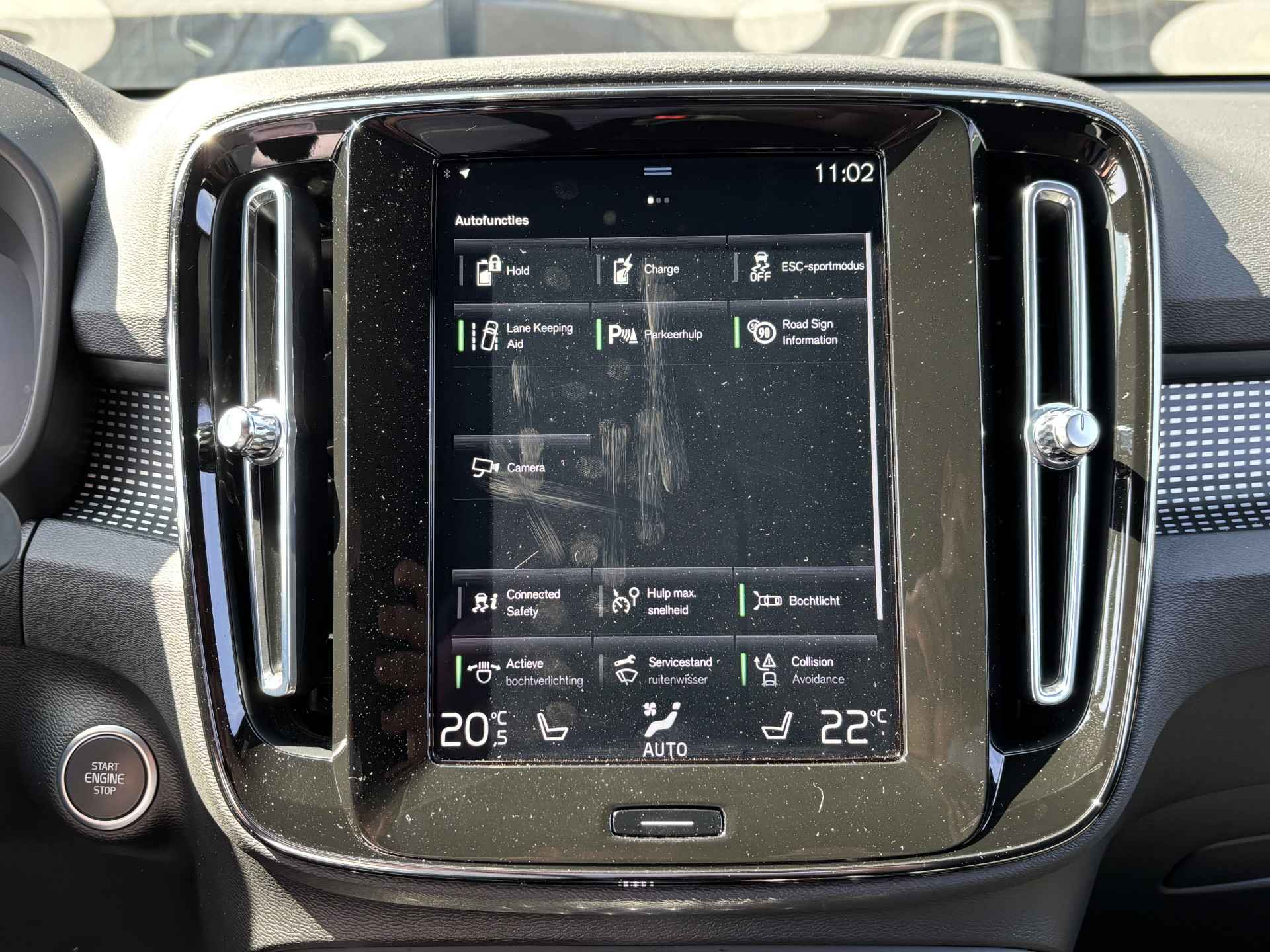 Zoals u mag verwachten van deze Volvo XC40 is hij uitgerust met een reeks aan actieve veiligheidssystemen. In het instrumentarium laat de verkeersborddetectie de actuele verkeersborden zien. Indien u onbedoeld de rijstrook lijkt te verlaten, reageert het Lane-keeping systeem meteen en corrigeert. Elke auto heeft een of meer blinde vlekken. De actieve dodehoekdetectie waarschuwt als er gevaar voor een aanrijding bestaat. In deze Volvo vinden we verder een forward collision warning system, hill hold functie, brake assist, vermoeidheidsherkenning en bandenspanningcontrolesysteem.