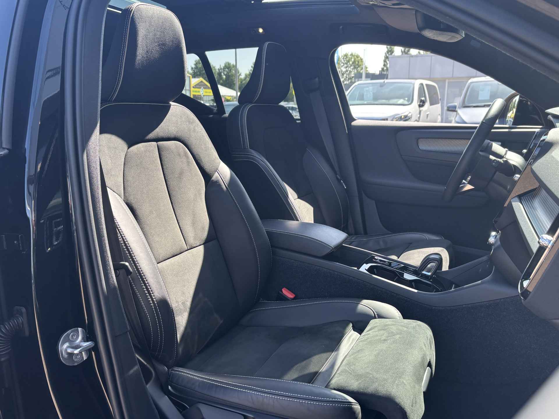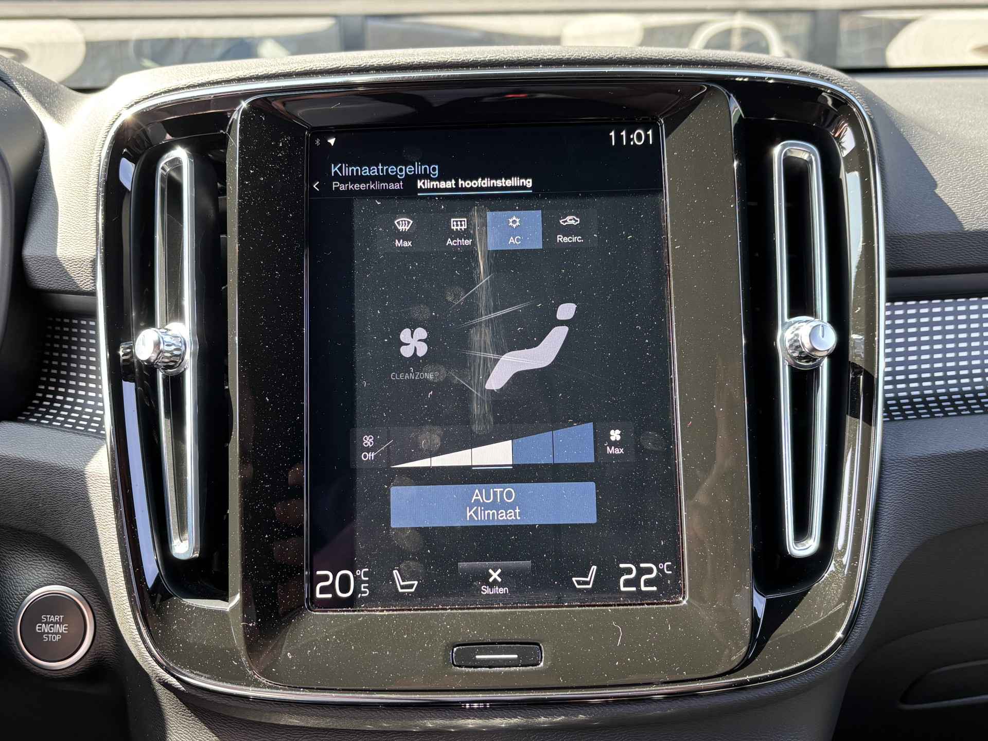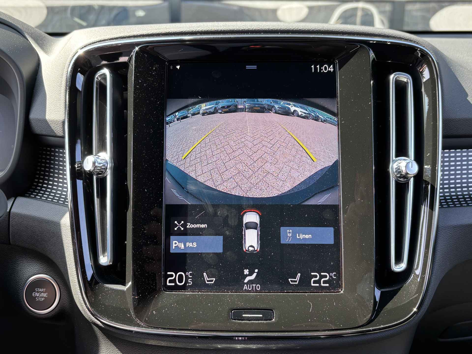 Zoals u mag verwachten van deze Volvo XC40 is hij uitgerust met een reeks aan actieve veiligheidssystemen. In het instrumentarium laat de verkeersborddetectie de actuele verkeersborden zien. Indien u onbedoeld de rijstrook lijkt te verlaten, reageert het Lane-keeping systeem meteen en corrigeert. Elke auto heeft een of meer blinde vlekken. De actieve dodehoekdetectie waarschuwt als er gevaar voor een aanrijding bestaat. In deze Volvo vinden we verder een forward collision warning system, hill hold functie, brake assist, vermoeidheidsherkenning en bandenspanningcontrolesysteem.