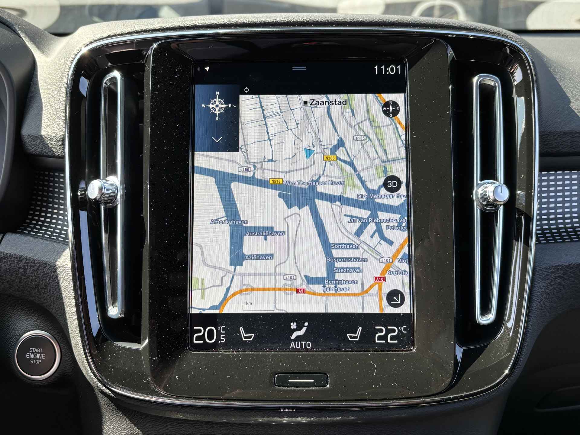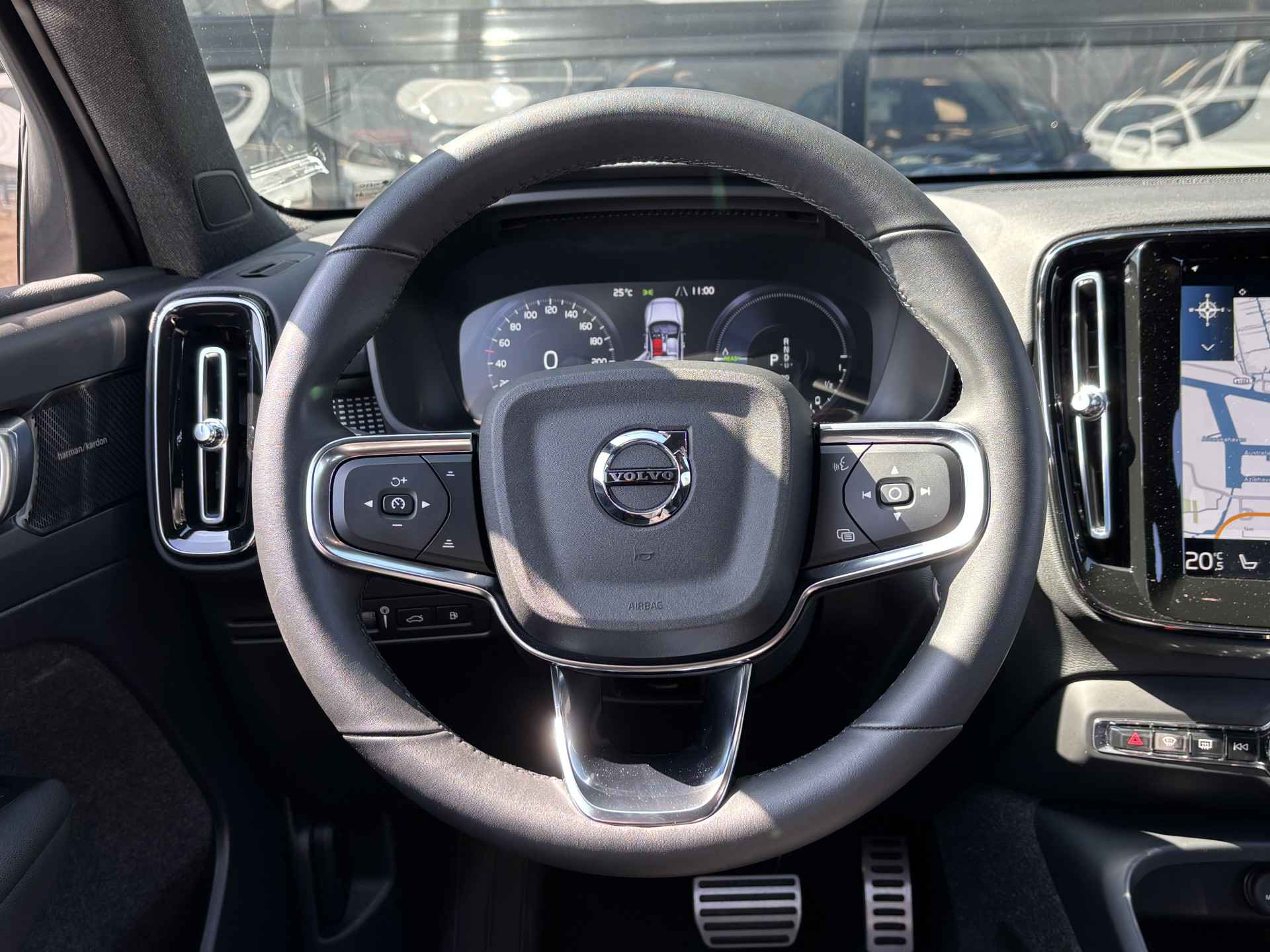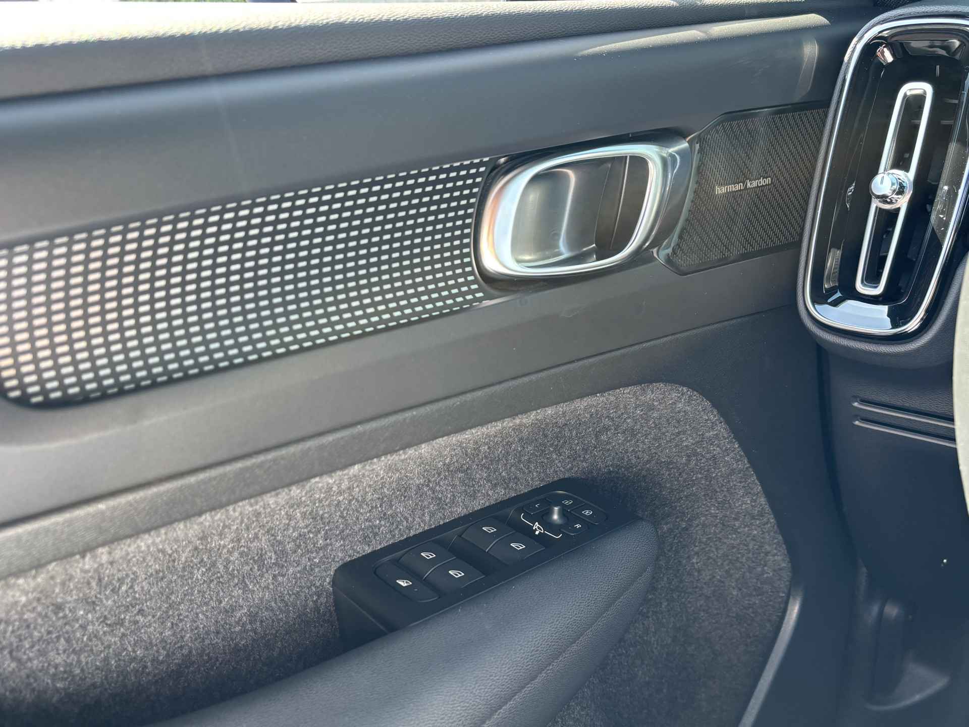 Zoals u mag verwachten van deze Volvo XC40 is hij uitgerust met een reeks aan actieve veiligheidssystemen. In het instrumentarium laat de verkeersborddetectie de actuele verkeersborden zien. Indien u onbedoeld de rijstrook lijkt te verlaten, reageert het Lane-keeping systeem meteen en corrigeert. Elke auto heeft een of meer blinde vlekken. De actieve dodehoekdetectie waarschuwt als er gevaar voor een aanrijding bestaat. In deze Volvo vinden we verder een forward collision warning system, hill hold functie, brake assist, vermoeidheidsherkenning en bandenspanningcontrolesysteem.